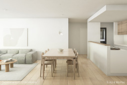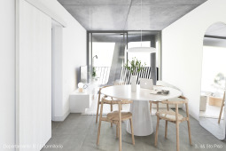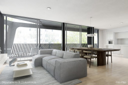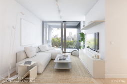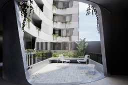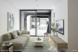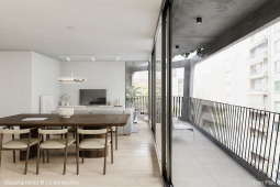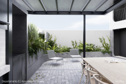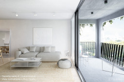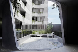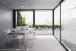 En el corazón del edificio, un patio central genera un flujo constante de luz y aire, aportando bienestar a cada unidad y destacando la importancia de la calidad ambiental en el diseño. Los palieres abiertos y las visuales despejadas completan esta propuesta, integrando de manera armónica la arquitectura con su entorno.