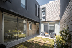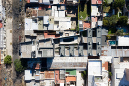 Tres condiciones determinan las características más salientes del proyecto. Por un lado, el proyecto se encuentra ubicado en Pichincha, un barrio cercano al Aérea Central de la ciudad, tradicionalmente residencial, que supo albergar fundamentalmente casas. Por otro lado, las dimensiones del lote, de una profundidad considerable, y de una forma quasi-trapezoidal, con un ancho significativo en el fondo. Por último, la normativa que determina una altura de 13m. al frente y 6m. en el centro de manzana, junto con la obligación de liberar el 30% del lote para patios. Éstas condiciones se tornan favorables para el proyecto de un complejo de viviendas que combine departamentos y casas con patio en torno a un conjunto de espacios comunes, ideales para el desarrollo de una comunidad.