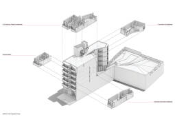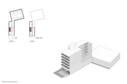 El Edifico 3dF adquiere así la condición de un edificio de usos mixtos [Comercio, Oficinas, Cocheras, Departamentos, Amenities], buscando maximizar el aprovechamiento del lote a partir de balancear la superficie cubierta con las condiciones óptimas de iluminación y ventilación requeridas por cada unidad funcional.