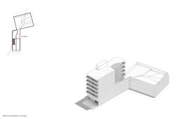 El proyecto se encuentra ubicado en el Primer Anillo Perimetral al Área Central de la ciudad de Rosario, caracterizado por una fuerte renovación edilicia. El lote, al igual que la mayor parte de la trama urbana de la ciudad, se encuentra signado por un ancho histórico de 8.66m. Sin embargo, el mismo presenta particularidades poco convencionales, producto de la adición de un segundo lote de mayor superficie en el centro de manzana, que actualmente funciona como un ‘pulmón’ de la misma. Esta condición de partida determina como respuesta proyectual un edificio no tradicional, que pueda explotar de modo positivo la geometría irregular del terreno.