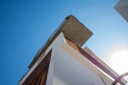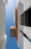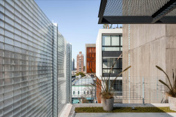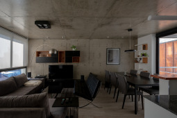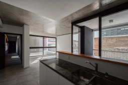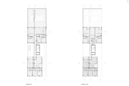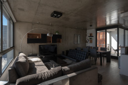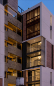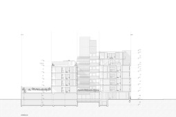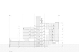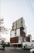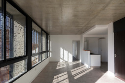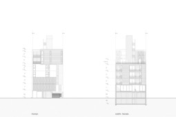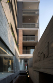 La gran mayoría de los edificios de viviendas locales, en los cuales se define una planta tipo y el edificio es el resultado de una extrusión vertical de la misma, se encuentra habitado por configuraciones familiares similares. A diferencia de esto, en SnJ se apela a generar una verdadera comunidad, conformada por la interacción de personas que respondan a diversas configuraciones familiares, acorde a las demandas diferenciadas de la sociedad contemporánea. Esta diversidad tipológica es la que define la imagen del edificio y se traduce en una estrategia de apilamiento formal/programático. Como ultima operación, y para enfatizar la retracción de la medianera Este, se produce un desplazamiento de una las piezas para habitar el espacio generado. El hormigón resuelve estructuralmente el voladizo del volumen desfasado y a su vez produce una sensación de pesado que enfatiza esa condición de (des)equilibrio aparente.