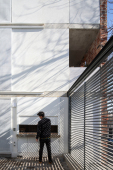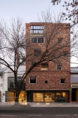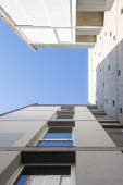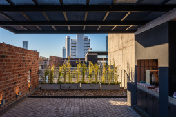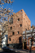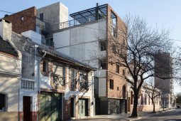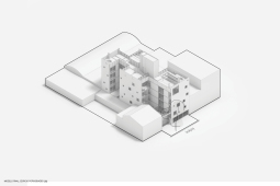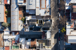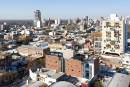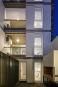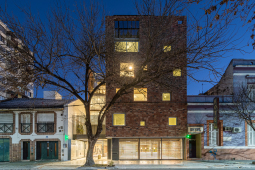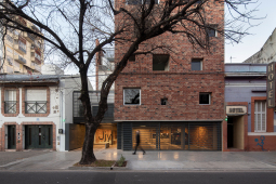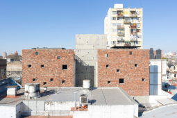 El proyecto se encuentra ubicado en Pichincha, un barrio cercano al Área Central de la ciudad, tradicionalmente residencial, que en la actualidad permite albergar edificios bajos (13.65m de altura), y compactos (con patios mínimos de 4m. de lado). Es por ello que el edificio se trabaja como una única masa edilicia porosa, horadada progresivamente a través de una sucesión de estrategias que determinan distintos gradientes de porosidad: En primer término, se utilizan múltiples patios pequeños, sacando ventaja a la normativa del barrio, de condición residencial baja, con la idiosincrasia de ‘casas con pequeños patios’, sin la necesidad de dejar 9 metros entre torres internas. En segundo término, se horadan los balcones, siempre trabajados como recesos de la piel del edificio. En tercer término, las ventanas perimetrales concebidas como recortes en los muros medianeros y de fachada. Finalmente, siguiendo el mismo concepto, se utilizan para la envolvente ladrillos de panderete colocando la mueca de carga vista, exacerbando el efecto de porosidad del edificio.