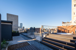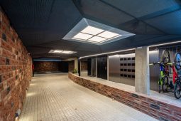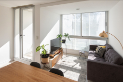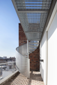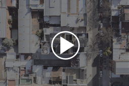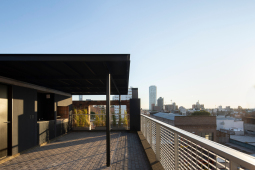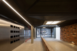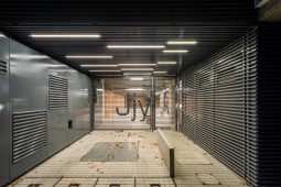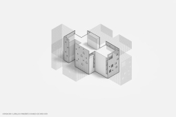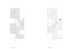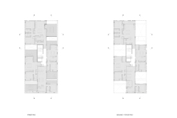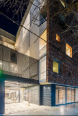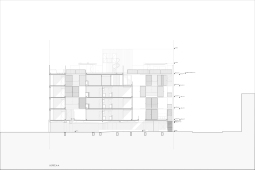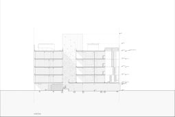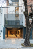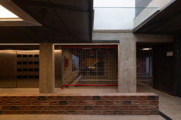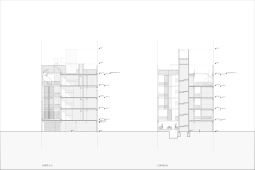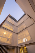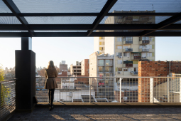 El contacto con el espacio público se resuelve a través de una planta baja completamente liberada de programas duros, ocupada en su totalidad por cocheras. Solo el núcleo de circulación llega al suelo generando un hall abierto, sin límites físicos, lo cual despega al edificio del suelo. En la azotea, se colocan los espacios comunes, con vista panorámica al barrio y al resto de la ciudad.