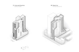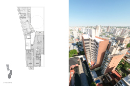 El proyecto se encuentra ubicado en el Primer Anillo Perimetral al Área Central de la ciudad de Rosario, cercano al polo gastronómico de Avenida Pellegrini, sobre un corredor urbano (calle Paraguay) que admite una altura máxima de edificación de 31.5m. En el lote, estrecho y de geometría irregular, se destaca hacia el sur la presencia de un edificio vecino de gran altura, y hacia el norte el predio de la Universidad Católica Argentina, de baja altura. Es por ello que el núcleo de circulación vertical del edificio se recuesta hacia la medianera sur, permitiendo optimizar de este modo el área potencial de iluminación y ventilación perimetral del proyecto, buscando las mejores orientaciones.