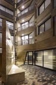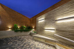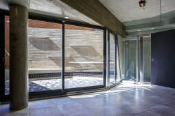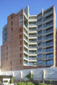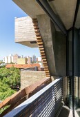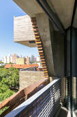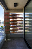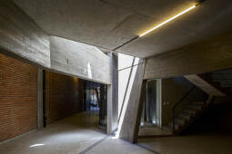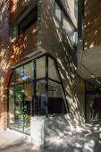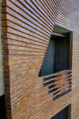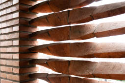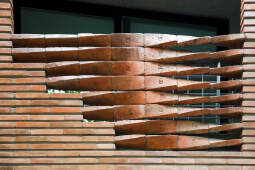 La envolvente de ladrillos se trabaja incorporando una serie de piezas especiales llamadas ‘Ladrillos Torcionados’, trabajados a partir de superficies regladas que permiten transicionar de forma gradual entre caras verticales y horizontales, generando una segunda continuidad superficial a escala de la unidad (el ladrillo). Este sub-sistema de ladrillos se propaga como un plug-in del sistema de ladrillos comunes, dotándolo de nuevas capacidades expresivas y funcionales, resolviendo a partir de su geometría barandas, paravistas, pantallas de control solar e incluso a contenedores de tierra para sembrar vegetación y conformar muros verdes.