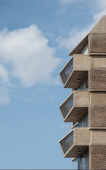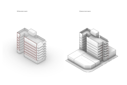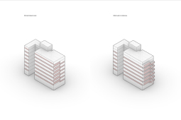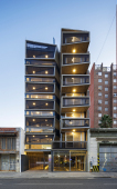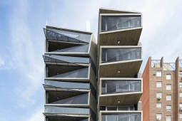 El proyecto se encuentra ubicado en Pichincha, un barrio cercano al Área Central de la ciudad, tradicionalmente residencial, sobre un corredor urbano que admite una altura máxima de 19.95m. Aprovechando que la fragmentación de los lotes vecinos hacia calle Riccheri difícilmente puedan albergar un edificio en el futuro, se propone un receso de la mitad de masa edilicia sobre la fachada, que de este modo amplifica hacia el Este el frente del proyecto, dotándolo de una condición de quasi-esquina. Dicha operación genera a su vez una independencia entre los balcones dando privacidad tanto entre distintas unidades y entre distintos ámbitos de la misma unidad. Asimismo, los balcones se tornan interdependientes a partir del intertrabado estructural.