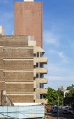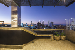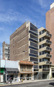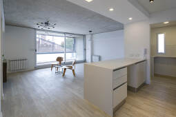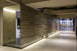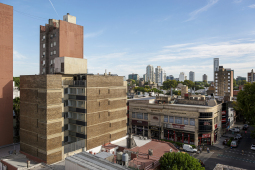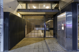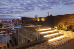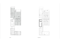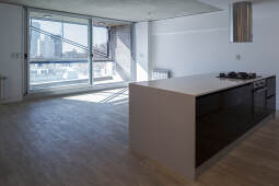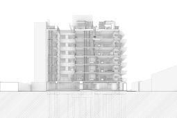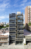 El contacto con el espacio público se resuelve a través de una planta baja completamente liberada de programas duros, ocupada en su totalidad por cocheras y un hall abierto, sin límites físicos, lo cual despega al edificio del suelo. En la azotea, se colocan los espacios comunes, con vista panorámica hacia el barrio y el resto de la ciudad.